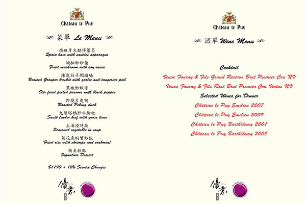 There will also have the presence during the dinner of the brand ambassador of the Chateau: Ms. Luu.